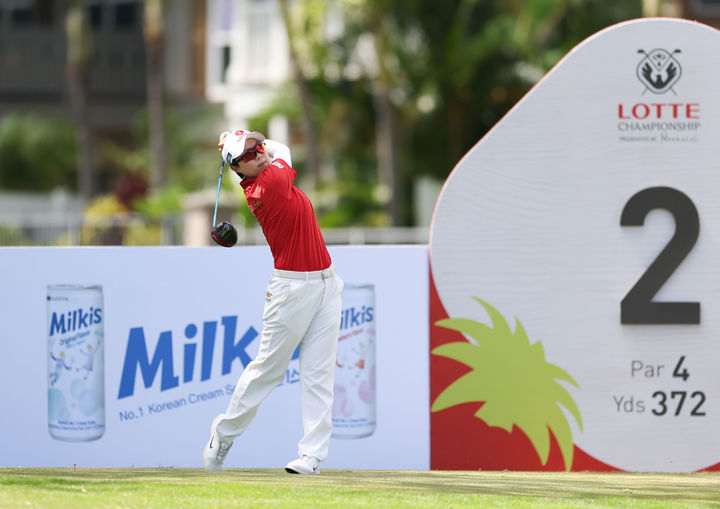 [서울=뉴시스] 김효주가 4일(현지 시간) 하와이 오하우섬 에바비치 호아칼레이CC에서 열린 '2025 롯데 챔피언십' FR 2번홀 티샷을 하고 있다. (사진=대홍기획 제공) 2025.10.05. [email protected] *재판매 및 DB 금지