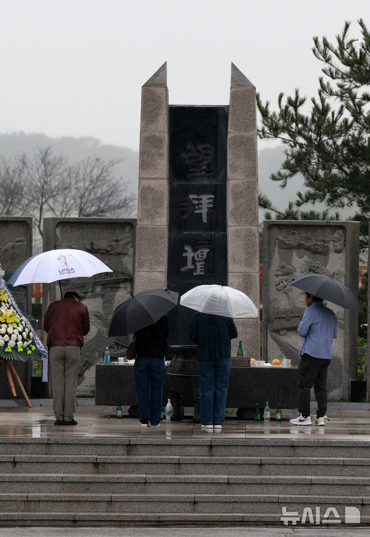 [파주=뉴시스] 이영환 기자 = 추석인 6일 오전 경기 파주시 임진각 망배단에서 실향민 및 가족들이 절을 올리고 있다. 2025.10.06. [email protected]