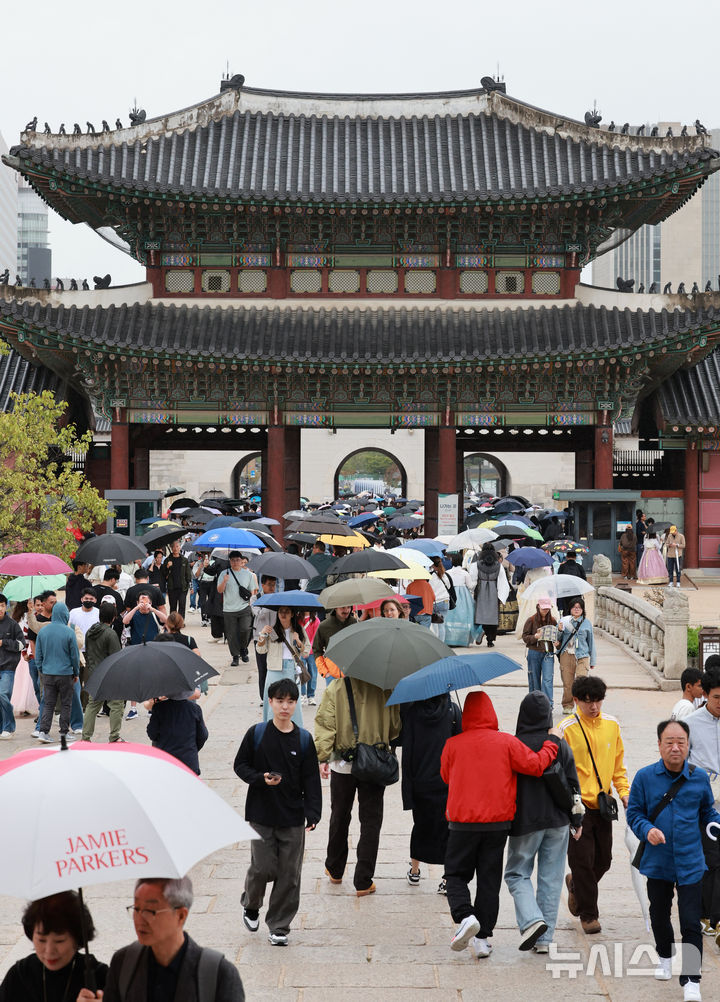 [서울=뉴시스] 이영환 기자 = 추석인 6일 오후 서울 종로구 경복궁이 외국인 관광객과 시민들로 붐비고 있다. 2025.10.06. [email protected]