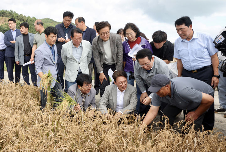 벼 깨씨무늬병 피해 현장 점검하는 김민석 국무총리