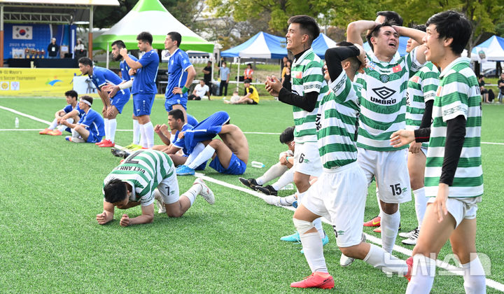[광주=뉴시스] 이현행 기자 = 추석 연휴 엿새째인 8일 오후 광주 광산구 월전공원에서 추석맞이 광산구청장배 전국 이주노동자 축구대회가 열리고 있다. 2025.10.08. [email protected]