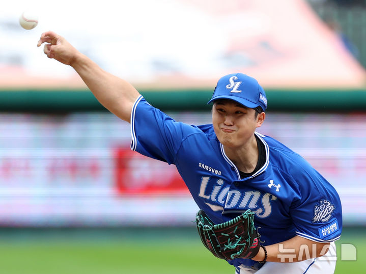 [인천=뉴시스] 조성우 기자 = 9일 인천 미추홀구 SSG랜더스필드에서 열린 2025 KBO 포스트시즌 준플레이오프 1차전 삼성 라이온즈와 SSG 랜더스의 경기, 삼성 선발투수 최원태가 역투하고 있다. 2025.10.09. [email protected]