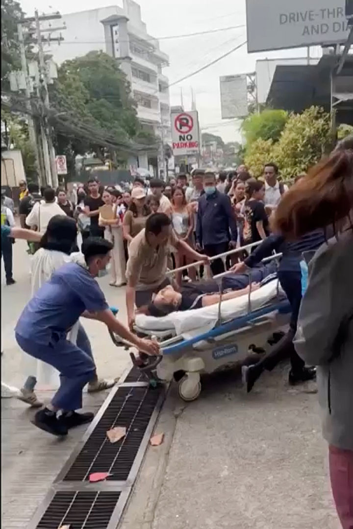[다바오=AP/뉴시스] 10일(현지 시간) 필리핀 민다나오섬 동쪽 해안에서 규모 7.4의 지진이 발생한 후 주도인 다바오에서 구급대원들이 강진 부상자를 급히 이송하고 있다. 민다나오섬 최대 도시 다바오에는 약 170만 명이 살고 있는 것으로 알려져 있다. 2025.10.10.