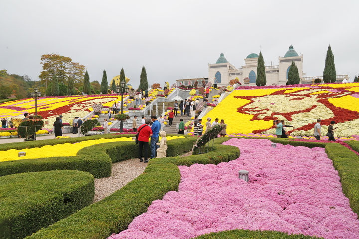[임실=뉴시스] 김종효 기자 = '2025 임실N치즈축제' 마지막 날인 5일, 형형색색 국화꽃으로 장식된 치즈테마파크를 관광객들이 거닐고 있다. (사진=임실군 제공) 2025.10.12. [email protected]