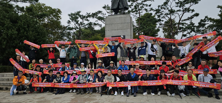 [서울=뉴시스] 고범준 기자 = 국제로타리 3640지구(총재 임우순)는 오는 24일 소아마비의 날을 앞두고 지난 11일 서울 남산공원 일대에서 로타리안들이 소아마비 퇴치를 목표로 2025-26 '엔드 폴리오'(END POLIO) 캠페인을 진행했다고 12일 밝혔다. (사진=국제로타리 3640지구 제공) 2025.10.12. [email protected] *재판매 및 DB 금지