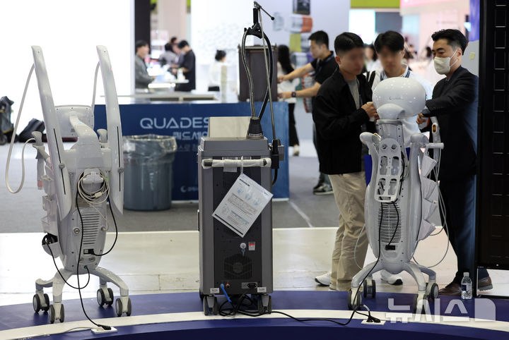[서울=뉴시스] 조성우 기자 = 12일 서울 강남구 코엑스에서 열린 2025 미용의료기기 박람회를 찾은 관람객이 부스를 둘러보고 있다. 2025.10.12. [email protected]