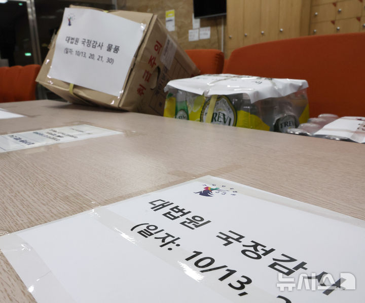 [서울=뉴시스] 김금보 기자 = 2025년 국정감사를 하루 앞둔 12일 서울 여의도 국회에 마련된 법제사법위원회 피감기관 대기 공간에 자리 선점을 위해 미리 붙여둔 기관명 표지가 붙어 있다. 2025.10.12. [email protected]