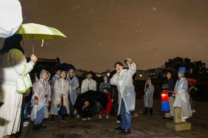 [서울=뉴시스] 김진아 기자 = 11일 서울 창경궁에서 열린 조선시대 천문관측유산으로 궁궐 속 과학 이야기를 다룬 프로그램 '조선의 밤, 하늘과 바람'에서 관람객들이 과학 크리에이터 항성과 엑소의 해설을 듣고 있다. (사진=국가유산진흥원 제공) 2025.10.12. [email protected] *재판매 및 DB 금지