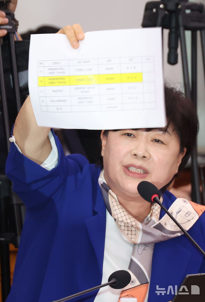 [서울=뉴시스] 고승민 기자 = 서영교 더불어민주당 의원이 13일 서울 여의도 국회에서 열린 법제사법위원회의 대법원 등 국정감사에서 조희대 대법원장에게 질의하고 있다. 2025.10.13. [email protected]