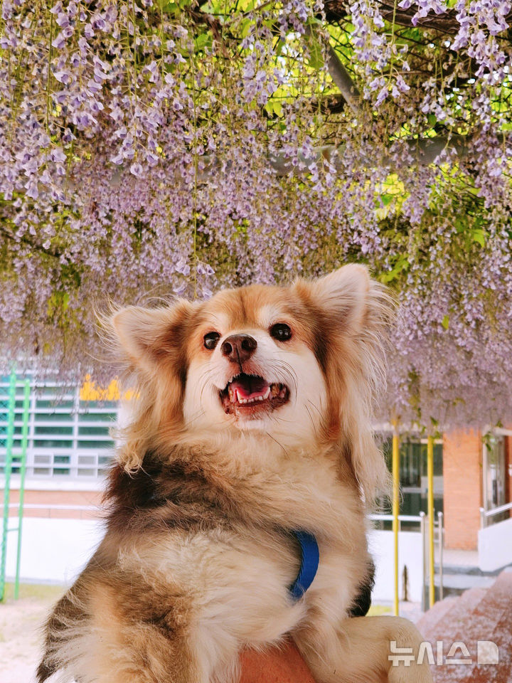 봄바람따라 꽃비가 쏟아지고,은은하게 퍼지는 향기를 맡으며 보라빛으로 펼쳐진 등나무꽃을 두 눈 가득 담아내며 반한듯한 모습을 순간 포착!