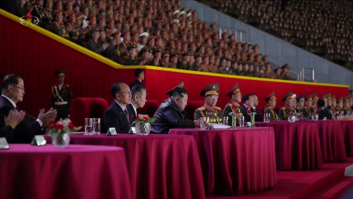[서울=뉴시스] 김정은 북한 국무위원장이 지난 12일 노동당 창건 80주년 경축행사 참가자들과 보장성원들을 축하 격려하고 대집단체조 및 예술공연을 함께 관람했다고 북한 조선중앙TV가 13일 방영했다. (사진=조선중앙TV 캡처) 2025.10.13. [email protected] *재판매 및 DB 금지