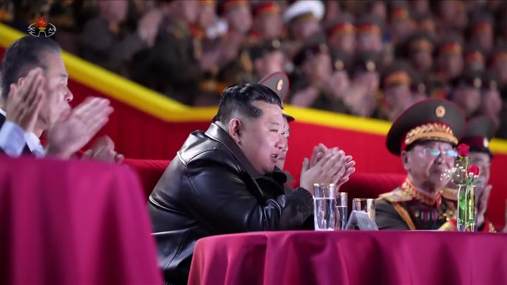 [서울=뉴시스] 김정은 북한 국무위원장이 지난 12일 노동당 창건 80주년 경축행사 참가자들과 보장성원들을 축하 격려하고 대집단체조 및 예술공연을 함께 관람했다고 북한 조선중앙TV가 13일 방영했다. (사진=조선중앙TV 캡처) 2025.10.13. [email protected] *재판매 및 DB 금지
