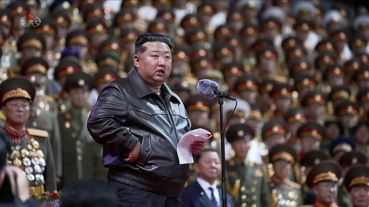 [서울=뉴시스] 김정은 북한 국무위원장이 지난 12일 노동당 창건 80주년 경축행사 참가자들과 보장성원들을 축하 격려하고 대집단체조 및 예술공연을 함께 관람했다고 북한 조선중앙TV가 13일 방영했다. (사진=조선중앙TV 캡처) 2025.10.13. [email protected] *재판매 및 DB 금지