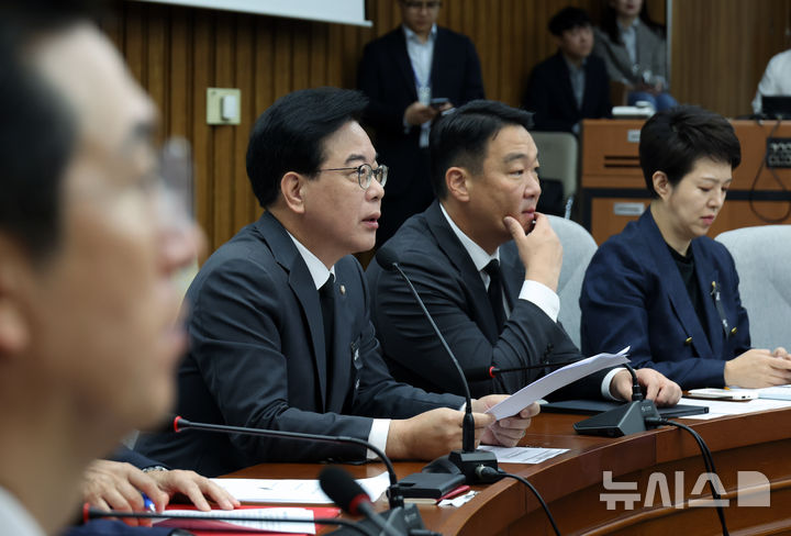[서울=뉴시스] 고승민 기자 = 송언석 국민의힘 원내대표가 14일 서울 여의도 국회에서 열린 국정감사 대책회의에서 발언하고 있다. 2025.10.14. [email protected]