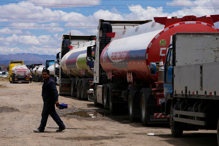 [엘알토=AP/뉴시스] 14일(현지 시간) 볼리비아 엘알토의 한 주유소에 화물 트럭들이 연료 부족 사태로 길게 줄지어 서 있다. 오는 19일 볼리비아 대선 결선 투표를 앞두고 발생한 심각한 연료 부족 사태로 선거 준비에 차질이 빚어지는 것으로 나타났다. 40년 만에 최악의 경제 위기를 겪고 있는 볼리비아는 연료와 외화 부족, 연간 23%가 넘는 물가 상승률 등으로 유권자들 사이에서 여당에 대한 불만이 커지고 있다. 2025.10.15.