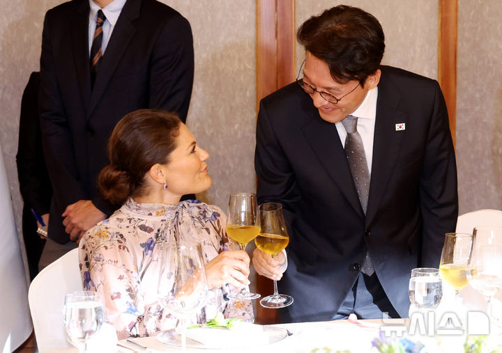빅토리아 스웨덴 왕세녀와 건배하는 김민석 총리