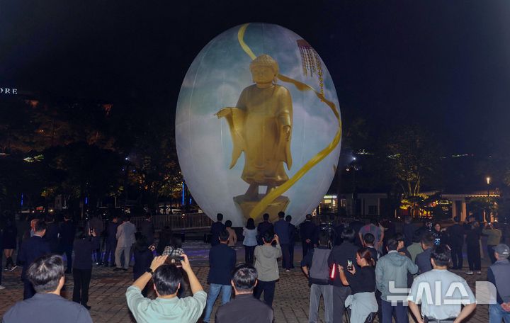 [경주=뉴시스] 이무열 기자 = 15일 경북 경주시 보문단지 호반광장에서 열린 2025 경주 APEC 정상회의 성공개최 지원을 위한 ‘빛의 향연’ 시연회가 진행되고 있다. 2025.10.15. [email protected]