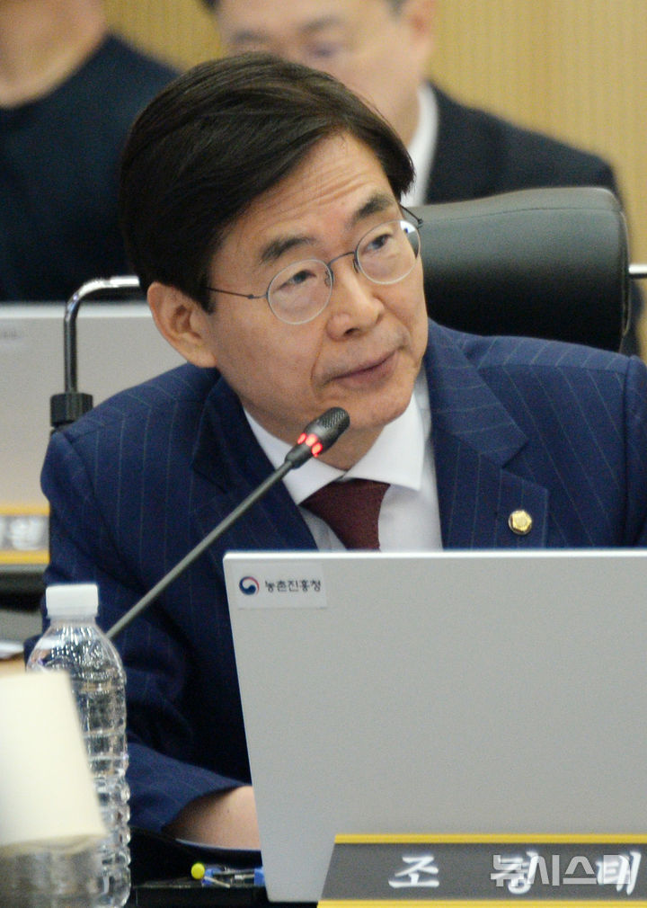 [전주=뉴시스] 김얼 기자 = 국민의힘 조경태 국회의원이 17일 전북 전주시 농촌진흥청에서 열린 '2025년도 농림축산식품해양수산위원회 국정감사'에 참석해 발언하고 있다. 2025.10.17. [email protected]