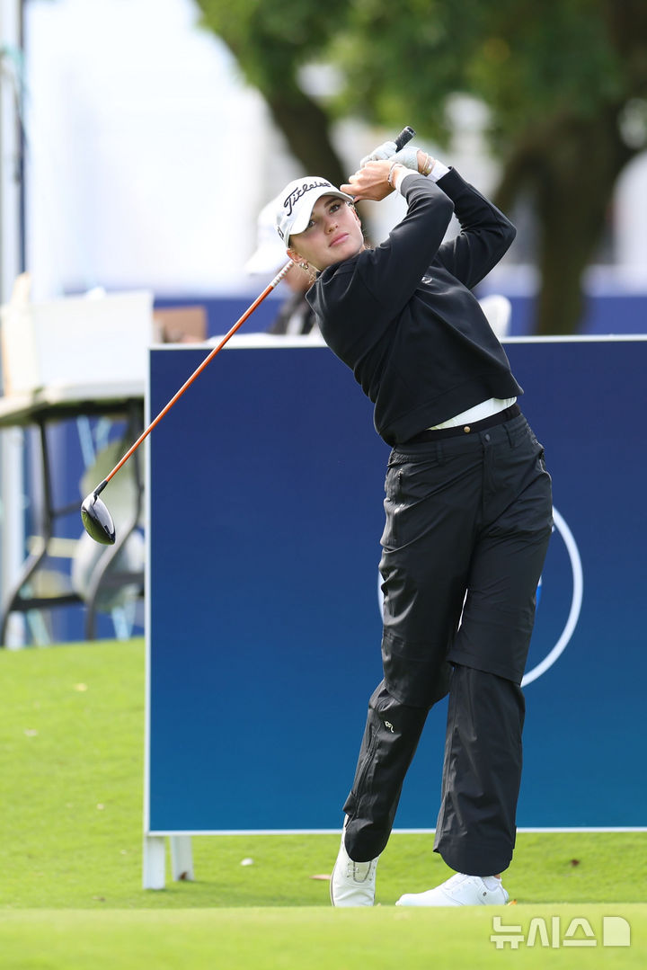 [해남=뉴시스] 권창회 기자 = 17일 오전 전남 해남 파인비치 골프링크스에서 열린 BMW 레이디스 챔피언십 2025에서 2라운드에서 나탈리아 구세바가 10번 홀 티샷을 치고 있다. 2025.10.17. [email protected]