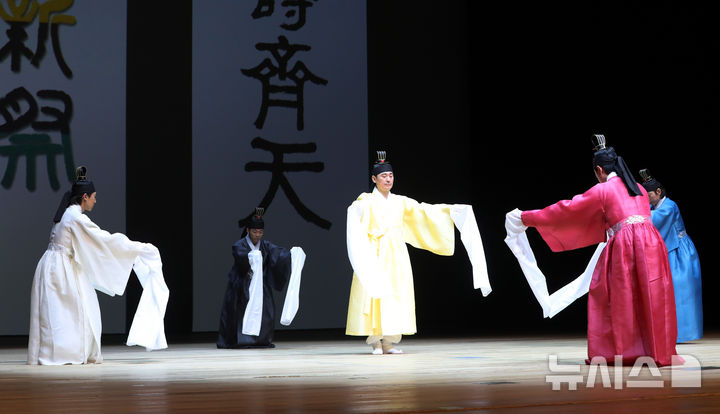 [서울=뉴시스] 김혜진 기자 = 17일 오후 서울 종로구 세종문화회관 대극장에서 열린 크라운해태제과 제20회 창신제 공연 미디어 공개 행사에서 출연자들이 리허설을 하고 있다. 2025.10.17. [email protected]