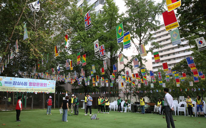 [서울=뉴시스] 17일 서울 송파구 잠실6동 생활체육공원에서 제5회 잠실6동 명랑운동회가 열리고 있다.