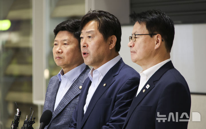 [인천공항=뉴시스] 최진석 = 한인 납치·감금 사태 관련 캄보디아 파견을 마친 홍기원, 황명선, 임호선 더불어민주당 의원이 18일 오전 인천국제공항을 통해 입국하며 발언하고 있다. (공동취재) 2025.10.18. [email protected]