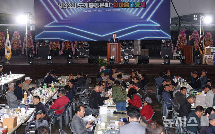 [삼척=뉴시스] 홍춘봉 기자 = 지난 18일 강원 삼척시 도계장터 공연장에서 개최된 ‘제33회 도계총동문회 한마음 대동제’ 행사에 참석한 박상수 삼척시장이 인사말을 하고 있다.(사진=삼척시 제공) [email protected]