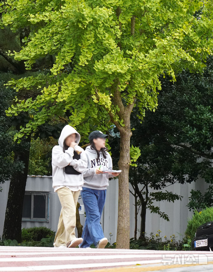 [제주=뉴시스] 우장호 기자 = 올 가을 들어 가장 쌀쌀한 20일 오전 제주대학교에서 외투를 챙겨 입은 학생들이 교정을 걸어가고 있다. 2025.10.20. [email protected]