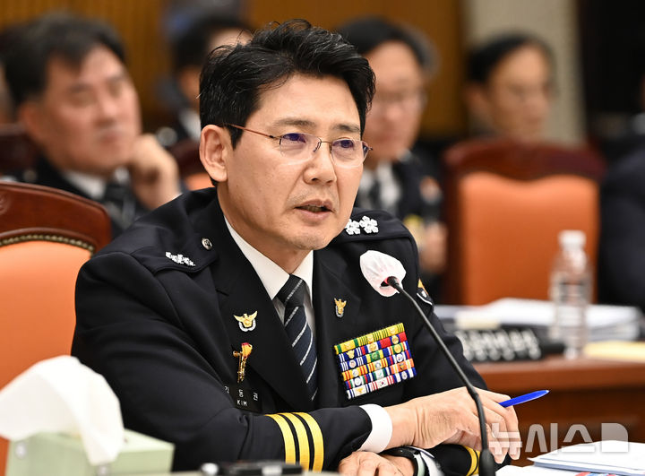 [수원=뉴시스] 김종택 기자 = 김동권 경기북부경찰청장이 21일 경기 수원시 경기남부경찰청에서 열린 국회 행정안전위원회 경기남·북부 경찰청에 대한 국정감사에서 의원 질의에 답변하고 있다. 2025.10.21. [email protected]