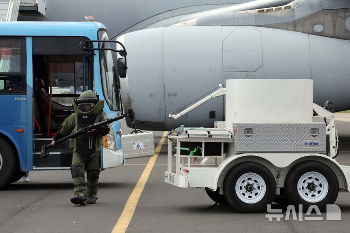 항공기 인질 및 폭발물 테러 상황을 가정한 이날 훈련에는 공군(대테러 초동조치반, 항공특수통제사), 육군 53사단, 부산경찰청 경찰특공대, 김해공항 EOD 등의 유관기간에서 80여 명이 참가했다. 2025.10.22. [email protected]