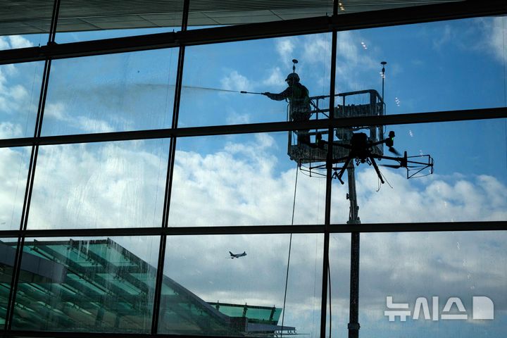 [인천공항=뉴시스] 김근수 기자 = 2025 APEC 정상회의를 앞둔 22일 인천국제공항 제2여객터미널에서 환경정화 캠페인 일환으로 드론을 이용한 청소 시연이 진행되고 있다. (공동취재) 2025.10.22. [email protected]