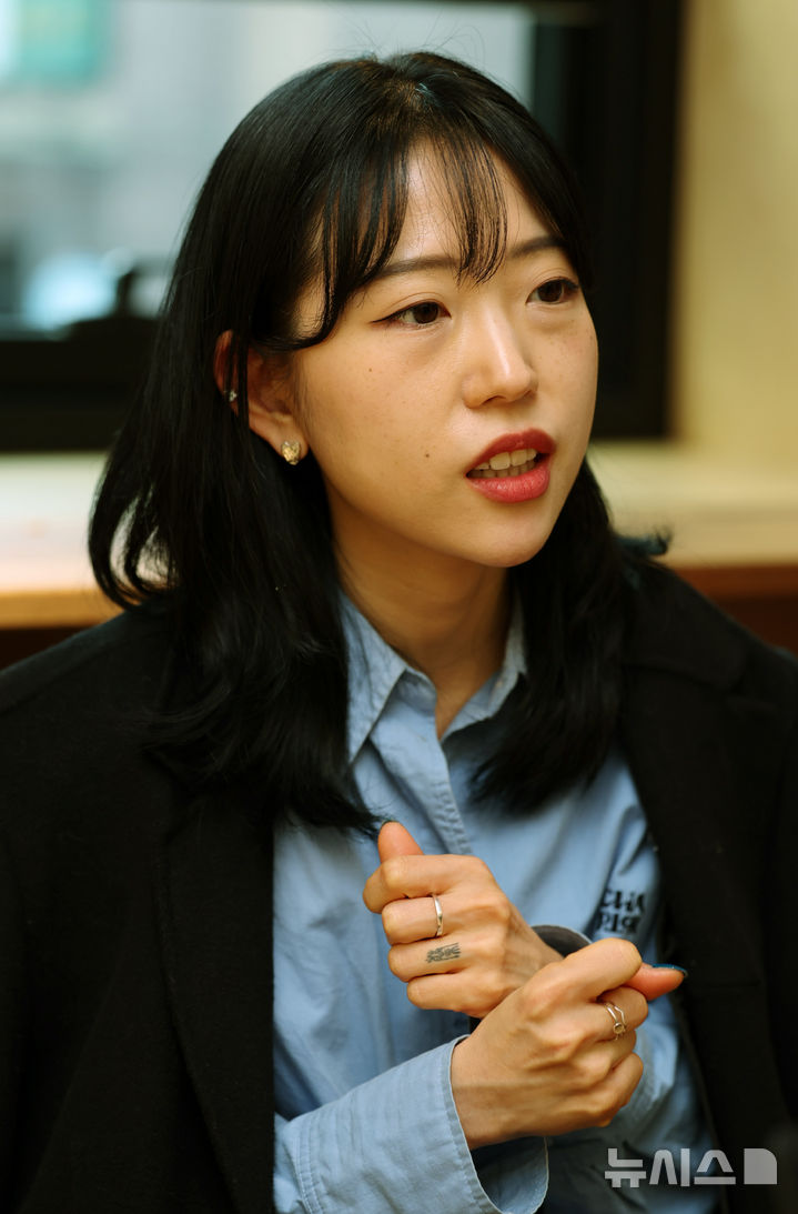 [서울=뉴시스] 배훈식 기자 = 연작소설집 '아무도 오지 않는 곳에서' 천선란 작가가 23일 오후 서울 중구 남산책방에서 뉴시스와 인터뷰하고 있다. 2025.10.23. [email protected]