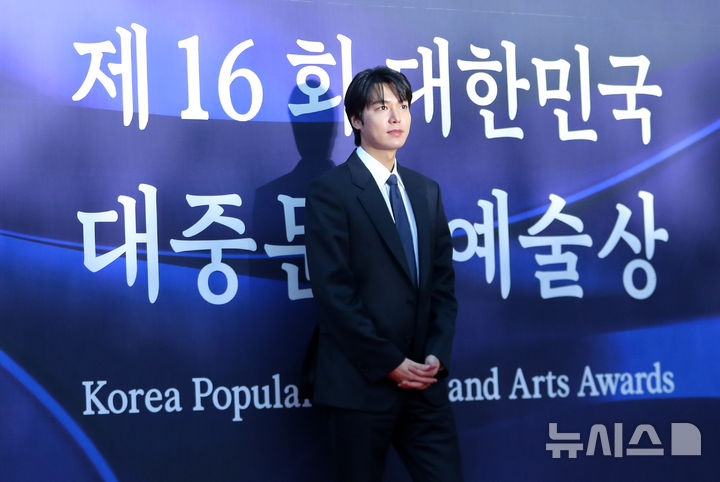 [서울=뉴시스] 김혜진 기자 = 배우 이민호가 23일 오후 서울 중구 국립극장에서 열린 제16회 대한민국 대중문화예술상에서 레드카펫을 밟고 있다. 2025.10.23. [email protected]