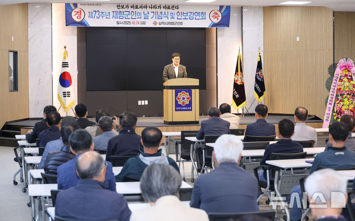 [삼척=뉴시스] 홍춘봉 기자 = 24일 강원 삼척농협 이사부점에서 삼척시재향군인회(회장 김순강) 주관으로 제73주년 재향군인의 날 기념식 및 안보강연회 행사에 참석한 박상수 삼척시장이 인사말을 하고 있다.(사진=삼척시 제공)[email protected]