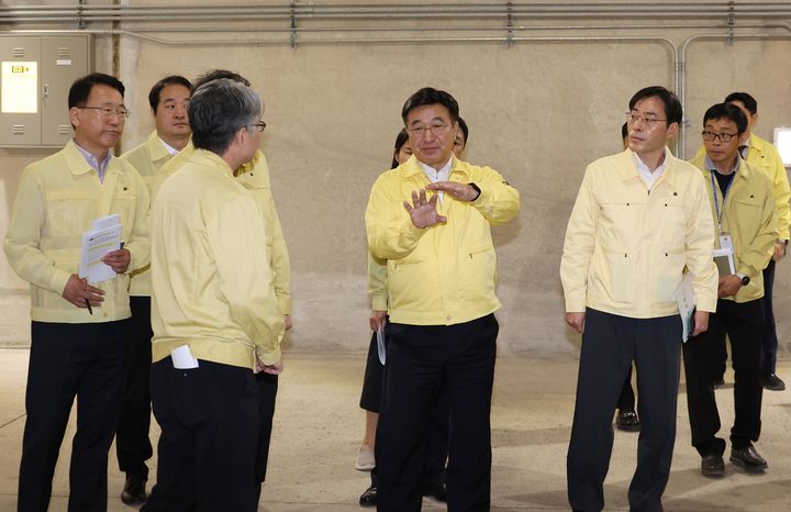 [서울=뉴시스] 윤호중 행정안전부 장관이 24일 충남 공주시 국가정보자원관리원 공주센터를 방문해 백업센터 주요시설과 재해복구체계를 점검하고 있다. (사진=행정안전부 제공) 2025.10.24. [email protected] *재판매 및 DB 금지