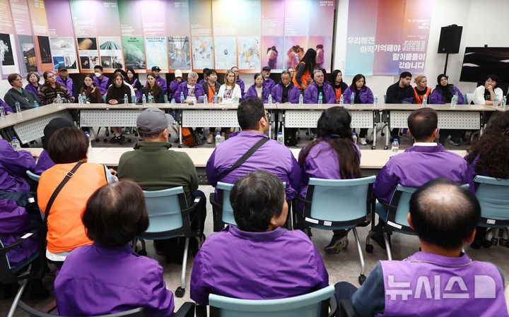 [서울=뉴시스] 김근수 기자 = 26일 서울 종로구 10.29 이태원참사 추모공간 별들의 집에서 외국인 희생자 유가족들과 간담회가 열리고 있다. 2025.10.26. [email protected]