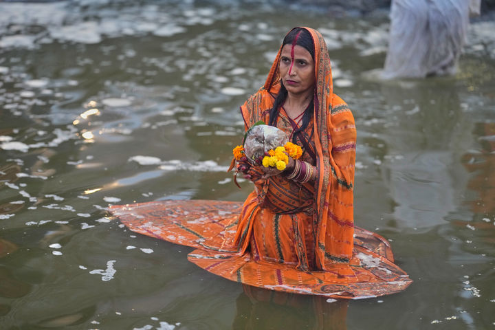 인도 차트 푸자 축제, 태양 향해 기도하는 힌두교도