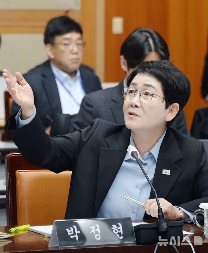 [전주=뉴시스] 김얼 기자 = 더불어민주당 박정현 국회의원이 28일 전북 전주시 전북특별자치도청 대회의실에서 열린 '2025년도 행정안전위원회 국정감사'에 참석해 발언하고 있다. 2025.10.28. [email protected]