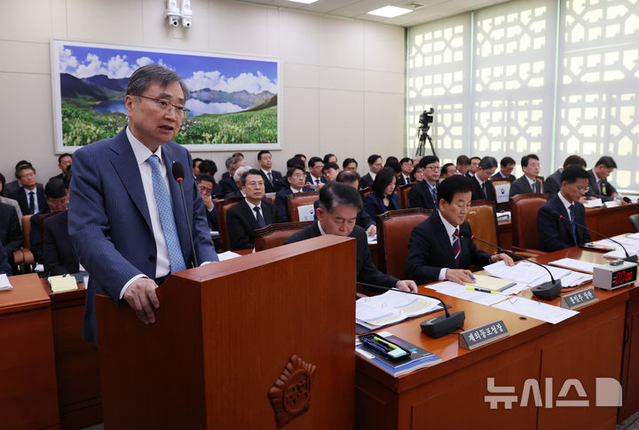 [서울=뉴시스] 김명년 기자 = 조현 외교부 장관이 28일 오전 서울 여의도 국회 외교통일위원회에서 열린 외교부-통일부 등에 대한 국정감사에서 업무보고하고 있다. 2025.10.28. [email protected]