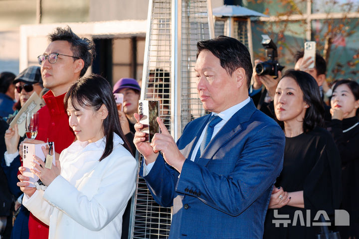 [경주=뉴시스] 추상철 기자 = 최태원 SK그룹 겸 대한상공회의소 회장이 28일 경상북도 경주시 사정동 플레이스C 갤러리에서 열린 ‘아시아태평양경제협력체(APEC) 최고경영자(CEO) 서밋, 배우자 미술전시 오프닝’에 참석해 있다. (공동취재) 2025.10.28. [email protected]