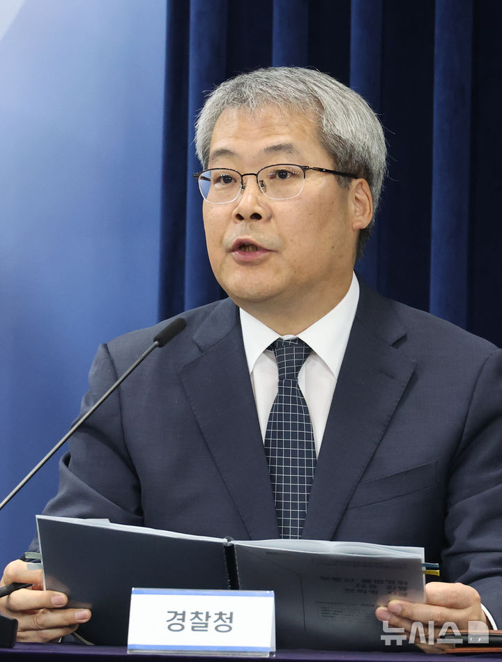 [서울=뉴시스] 김명원 기자 = 홍석기 경찰청 수사국장이 30일 오전 서울 종로구 정부서울청사에서 부동산 불법행위 대응 관계 부처 합동브리핑을 하고 있다. 2025.10.30. [email protected]
