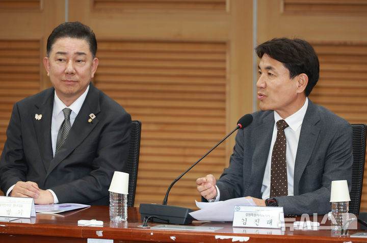 [서울=뉴시스] 고승민 기자 = 김진태 강원도지사가 30일 서울 여의도 국회 의원회관에서 열린 '강원형 성장엔진, AI생태계 전략에서 찾다' 토론회에서 축사를 하고 있다. 2025.10.30. [email protected]
