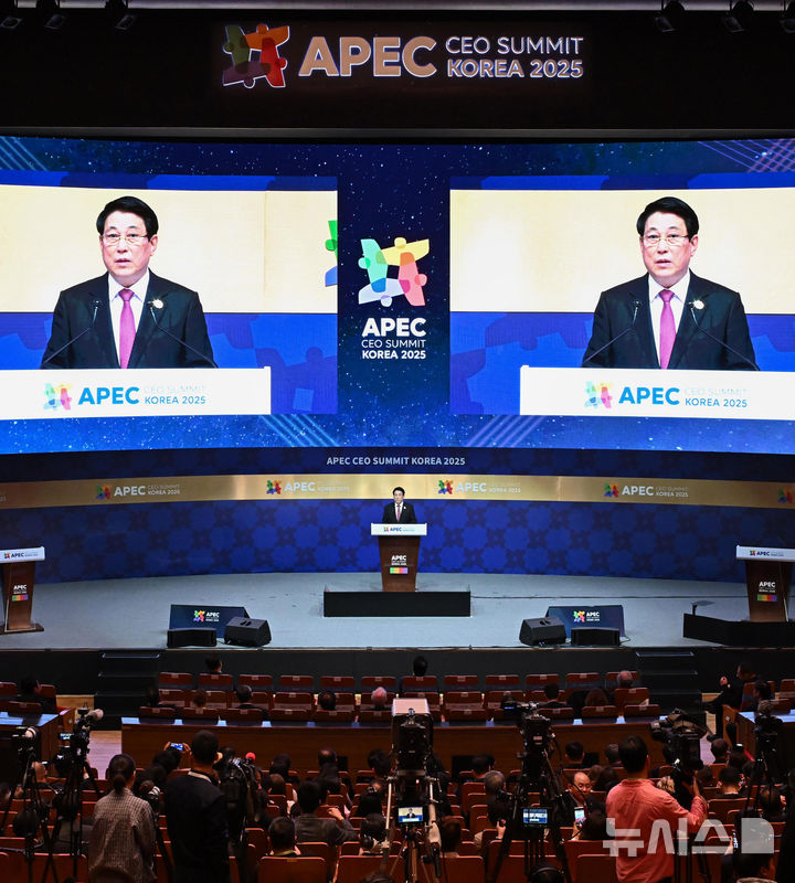 [경주=뉴시스] 추상철 기자 = 르엉 끄엉 베트남 국가주석이 30일 경북 경주시 경주예술의전당에서 열린 2025 아시아태평양경제협의체(APEC) 최고경영자(CEO) 서밋에서 정상 특별연설을 하고 있다. (공동취재) 2025.10.30. [email protected]