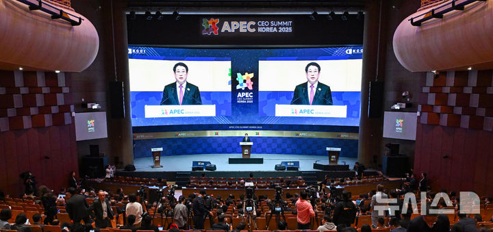 [경주=뉴시스] 추상철 기자 = 르엉 끄엉 베트남 국가주석이 30일 경북 경주시 경주예술의전당에서 열린 2025 아시아태평양경제협의체(APEC) 최고경영자(CEO) 서밋에서 정상 특별연설을 하고 있다. (공동취재) 2025.10.30. [email protected]