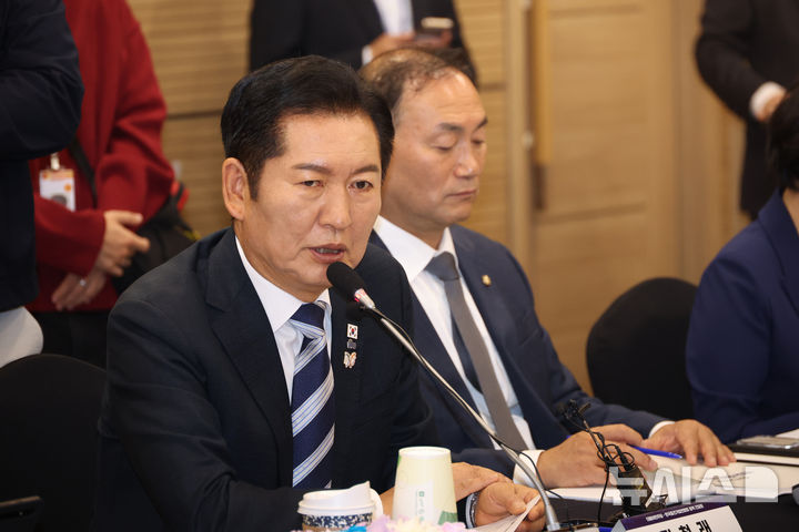 [서울=뉴시스] 김명년 기자 = 정청래 더불어민주당 대표가 31일 오전 서울 마포구 상장회사회관에서 열린 '더불어민주당-한국중견기업연합회 정책간담회에서 모두발언하고 있다. 2025.10.31. [email protected]