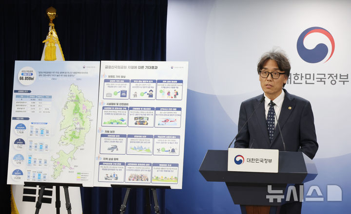 금정산국립공원 지정 심의 등 브리핑하는 금한승 기후부 차관