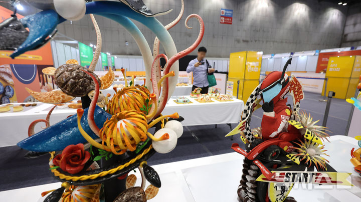 [고양=뉴시스] 전진환 기자 = 31일 경기도 고양시 킨텍스에서 열린 2025년 대한민국 소상공인 기능경진대회에서 관람객이 베이커리쇼 공예부문 작품을 감상하고 있다. 2025.10.31. [email protected]