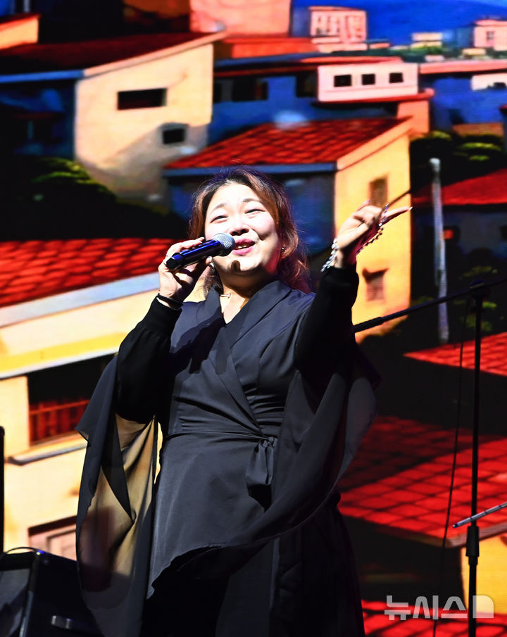 [화성=뉴시스] 김종택 기자 = '2025 화성재즈페스티벌'이 열린 1일 오후 경기 화성시 향남 도원체육공원에 마련된 무대에서 소울 음악의 보컬리스트 바키가 열띤 공연을 펼치고 있다. 2025.11.01. [email protected]