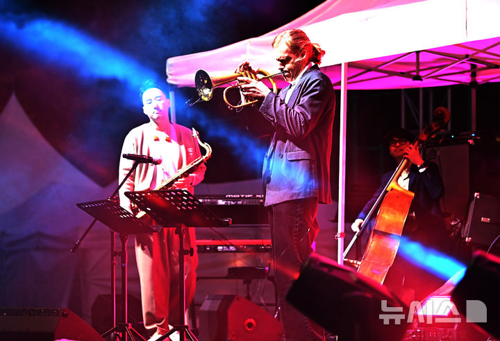 [화성=뉴시스] 김종택 기자 = '2025 화성재즈페스티벌'이 열린 1일 오후 경기 화성시 향남 도원체육공원에 마련된 무대에서 윱 반 라인 라임이 열띤 공연을 펼치고 있다. 2025.11.01. [email protected]