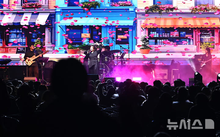 [화성=뉴시스] 김종택 기자 = '2025 화성재즈페스티벌'이 열린 1일 오후 경기 화성시 향남 도원체육공원에 마련된 무대에서 소울 음악의 보컬리스트 바키가 열띤 공연을 펼치고 있다. 2025.11.01. [email protected]